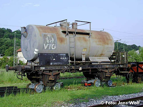 Der in Amstetten beheimatete Kesselwagen (ex VTG) dient hier als Vorführfahrzeug für die Rollbockanlage in Amstetten.