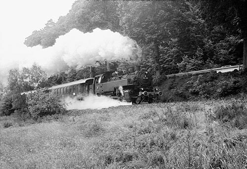 Besonders beliebt bei den Freunden der Dampflokgeräusche waren die Fahrten auf der Steilstrecke in Richtung Ittersbach. Hier kämpft sich der Zug bei Reichenbach Kurpark bergan. (DS) |