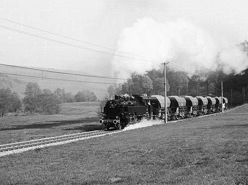 Mit viel Getöse wurden verschiedene Schotterzüge für die AVG gefahren. Die 86er brachte viel mehr Leistung als die damals vorhandenen Dieselloks, die jeweils höchstens zwei der vierachsigen Schotterwagen befördern konnten. Hier konnte die Maschine nach der HU so richtig zeigen, dass sie noch lange nicht zum alten Eisen gehört. (DS) |