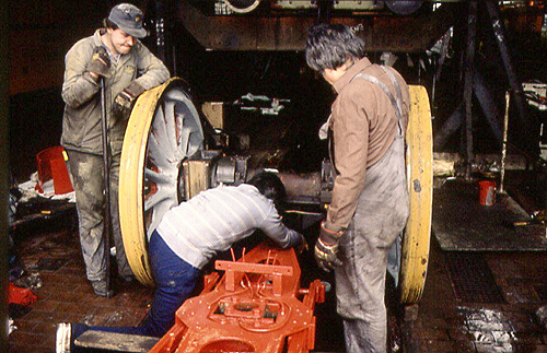 Max Sontheimer (†) und Jürgen Regler arbeiten am Dampfdom.