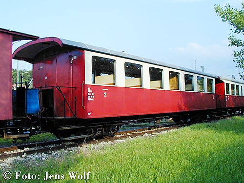 Der 4-achsige Schmalspur-Personenwagen KB4i 2 in Amstetten. Er kommt wie viele andere Fahrzeuge von der Appenzeller Bahn in der Schweiz.